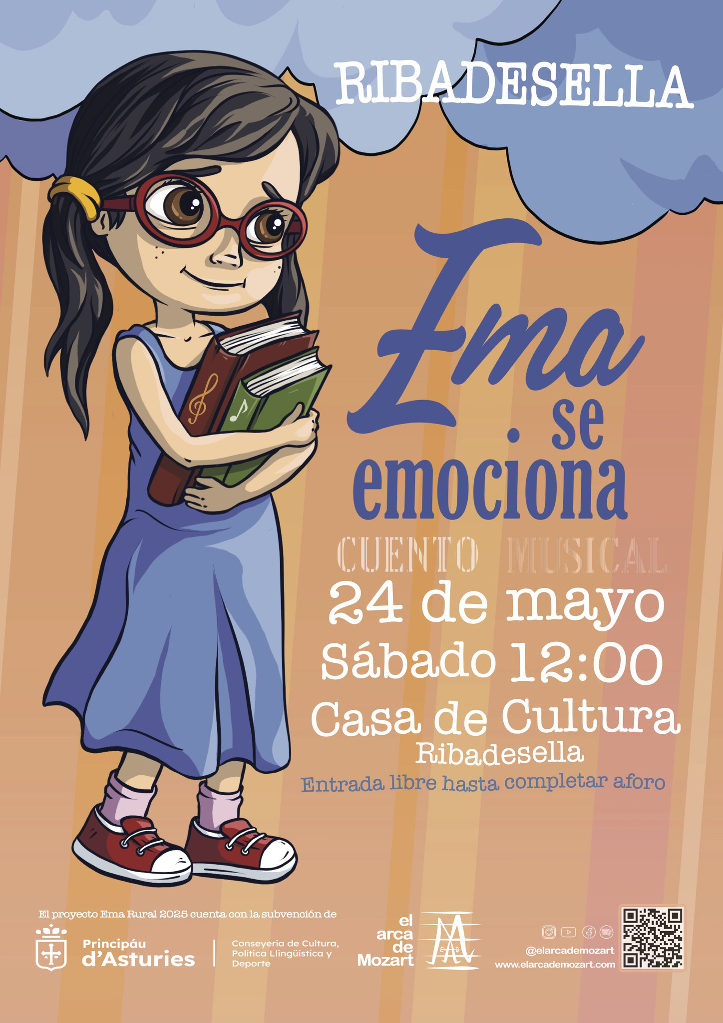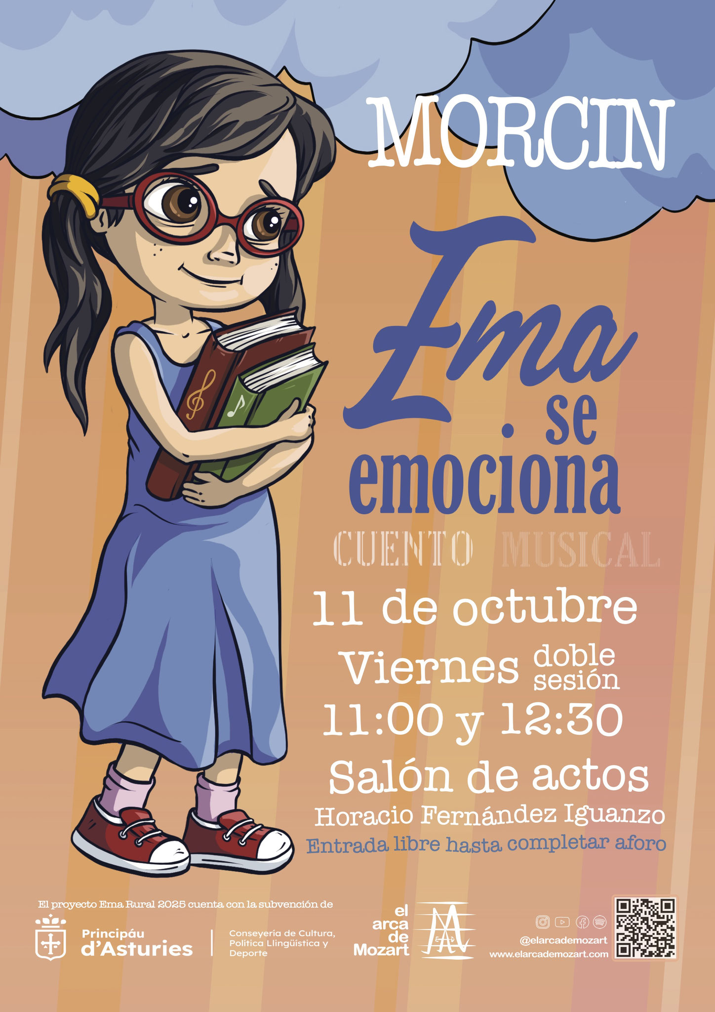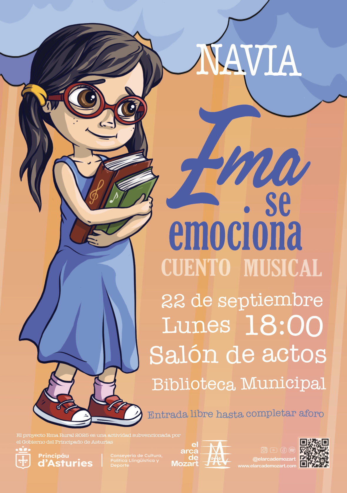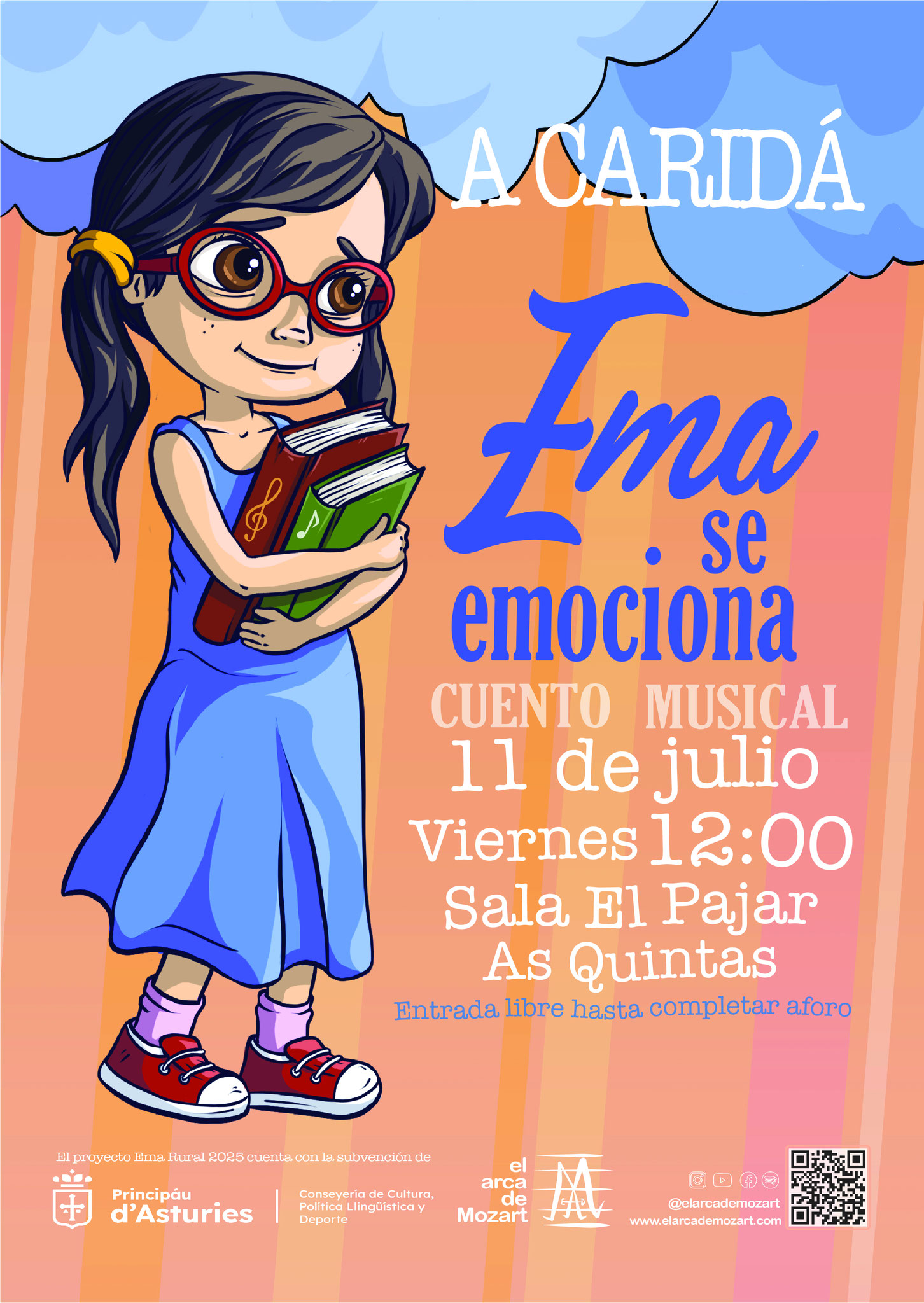 Conjunto de 14 representaciones del cuento musical Ema se emociona en entorno rural asturianos prestando en directo por El Arca de Mozart.